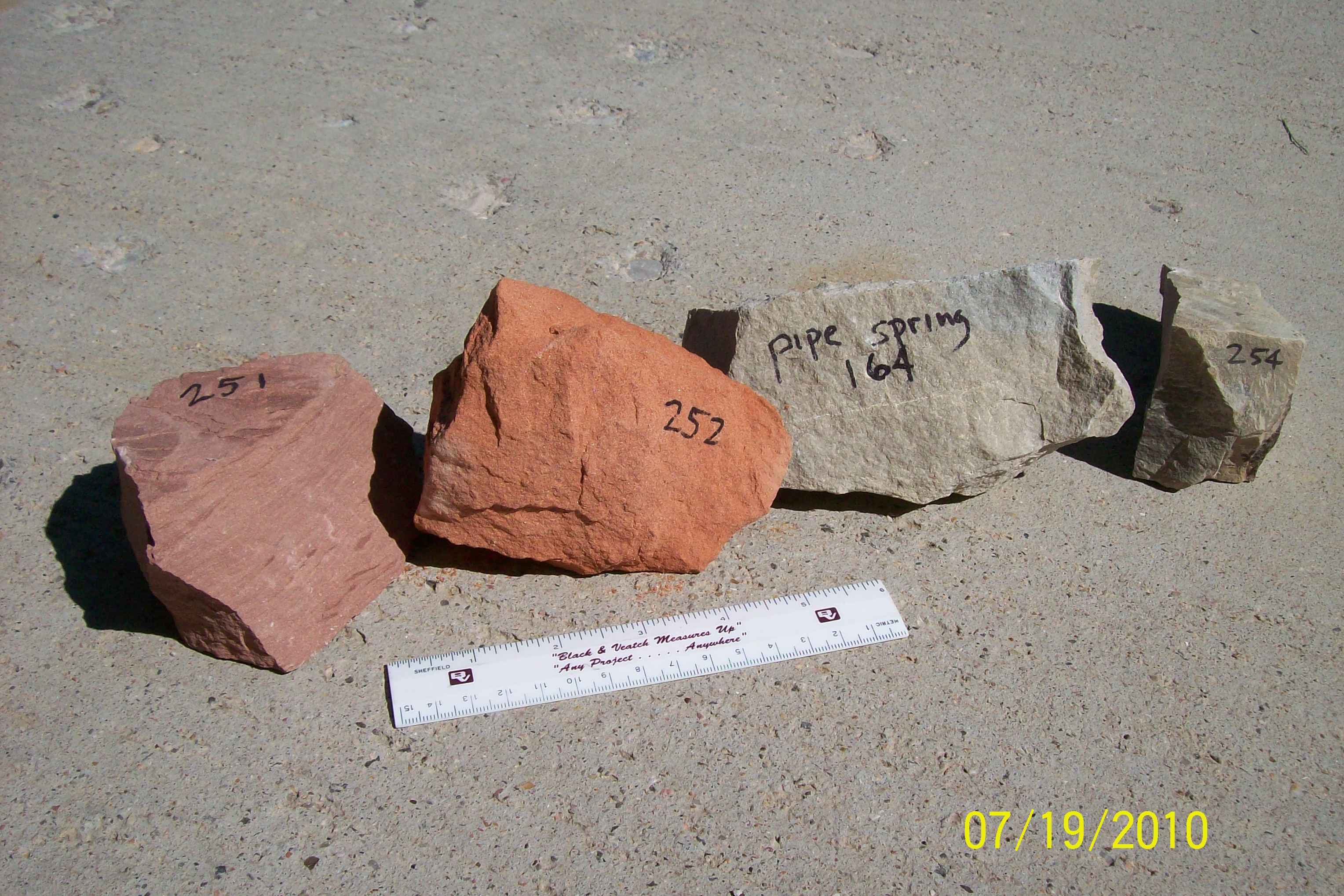Cretaceous Aquifer has 20-40% porosityThe Cretaceous Aquifer consists of the Claron (40% porosity), the Straight Cliffs, and Dakota Sandstone (20-30% porosity). The beds dip to the east (see Bryce Canyon cross-section). The beds dip more to the north, as is seen looking east to or north from Fiddler's Canyon. Excellent porosity, as shown in both outcrop and rock samples shown in bottom images below. |